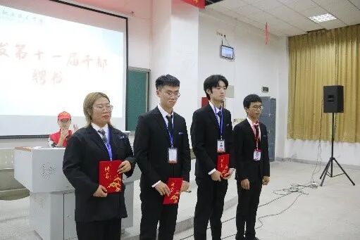 我院青志协储干通过就职演讲的方式展示自身优势和对青志协工作的认知和规划。之后朱元勇会长为十一届干部颁发聘书。