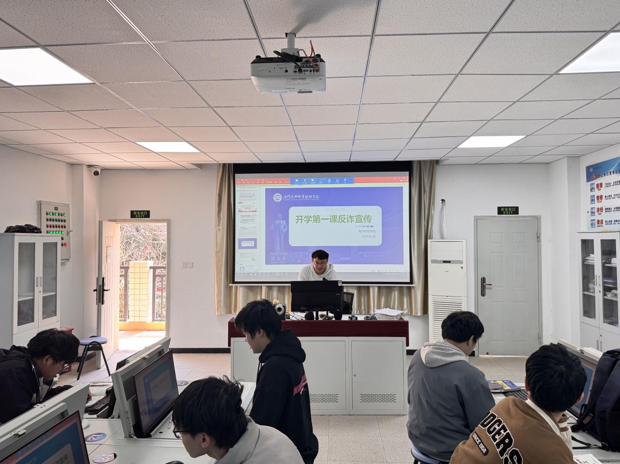 学院全体辅导员牵头召开反诈主题班会,将反诈教育融入开学第一课核心内容,结合近期校园及社会上高发的电信网络诈骗真实案例,抽丝剥茧深度剖析各类诈骗的惯用套路与作案手法,让学生直观认识到诈骗的隐蔽性和危害性。同时,向全体学生普及“不轻信、不透露、不转账”的防骗核心口诀,倡导每位学生不仅要自身提高警惕,更要争做校园“反诈宣传员”,主动向家人、朋友传递反诈知识,以一人带动一片,共同筑牢校园反诈的思想防线。
