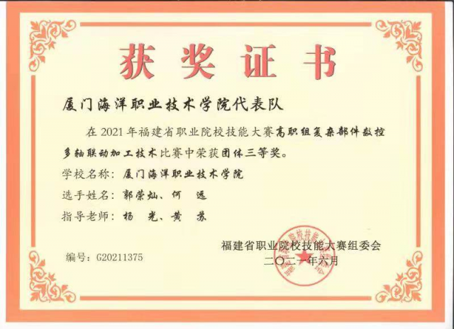 “模具数字化设计与制造工艺”项目三等奖2项,二等奖1项