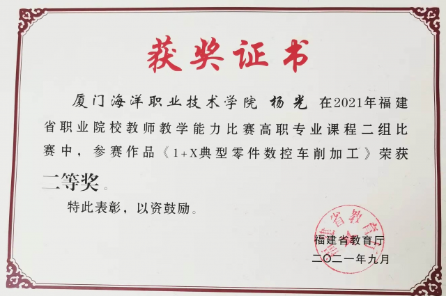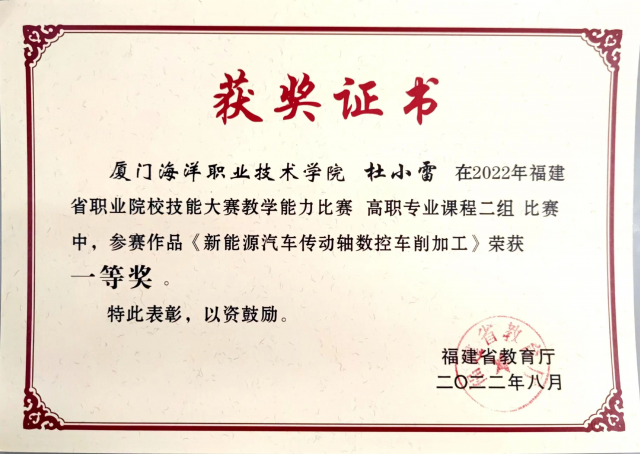 福建省职业院校教师教学能力比赛:一等奖1项,2等奖2项
