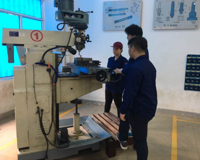 金工实训中心占地面积约1602㎡,设有工位100个,教学设备60台套,普通车床CDS6136、CDS6140共10台;万能摇臂铣床X6328、X5032共7台;立轴园台平面磨床M7480A、万能工具磨床MQ6025A、外圆磨床MW1432B、摇臂钻床ZQ3032、双栓式金属带锯床G4230、液压剪板机QC12Y、各1台;立式砂轮机M3025、台式钻床(Z4016、ZT4116)各4台;电焊机(BQ1-315、BX1-250、BX6-250、BX1-250)共16台;氩焊机(WS-250、WS-200)共2台。主要面向数控技术、模具设计与制造、机电一体化、机械设计与制造、制冷与冷藏等专业的学生,以课程标准为依据,通过典型工作任务使学生熟悉各种工、量具的使用;掌握铣、车、钳、焊等各种基本技能,提高学生各种设备操作水平及各工种的加工工艺水平,为学生走向工作岗位奠定基础的实训基地。