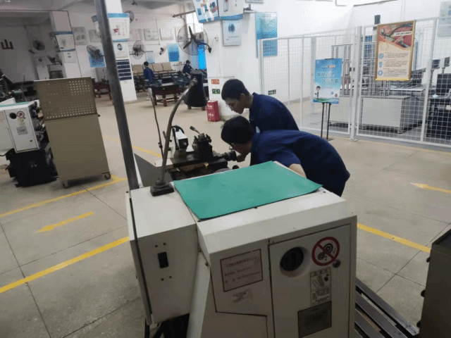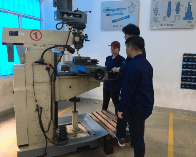 金工实训中心占地面积约1602㎡,设有工位100个,教学设备60件,普通车床CDS6136、CDS6140共10台;万能摇臂铣床X6328、X5032共7台;立轴园台平面磨床M7480A、万能工具磨床MQ6025A、外圆磨床MW1432B、摇臂钻床ZQ3032、双栓式金属带锯床G4230、液压剪板机QC12Y、各1台;立式砂轮机M3025、台式钻床(Z4016、ZT4116)各4台;电焊机(BQ1-315、BX1-250、BX6-250、BX1-250)共16台;氩焊机(WS-250、WS-200)共2台。主要面向数控技术、模具设计与制造、机电一体化、机械设计与制造、制冷与冷藏等专业的学生,以课程标准为依据,通过典型工作任务使学生熟悉各种工、量具的使用;掌握铣、车、钳、焊等各种基本技能,提高学生各种设备操作水平及各工种的加工工艺水平,为学生走向工作岗位奠定基础的实训基地。