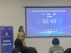 作为团队指导老师,她带领学生参观陈嘉庚纪念馆,重走红色足迹,重温嘉庚精神;与禾缘社区党支部签订共建协议,开展“学党史,增信念,跟党走”的党史知识问答竞赛;采访“光荣在党50年”纪念章获得者,聆听老党员的故事;带领学生访谈脱胎漆器助理工程师,感受新时代青年传承陶瓷文化、助力家乡振兴的担当和责任;指导学生参加福建省职业生涯规划大赛,荣获优秀奖。