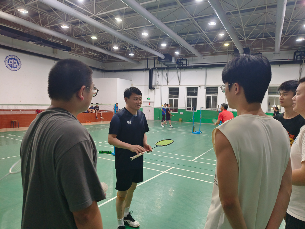 为积极响应建设体育强国的号召,丰富校园文化生活,增强师生凝聚力,5月16日下午,我校党委委员、纪委书记蔡宏伟专程来到羽毛球馆,与港机3221班学生代表、海洋机电学院党总支副书记胡素惠、辅导员汪星星等师生相约羽毛球赛。