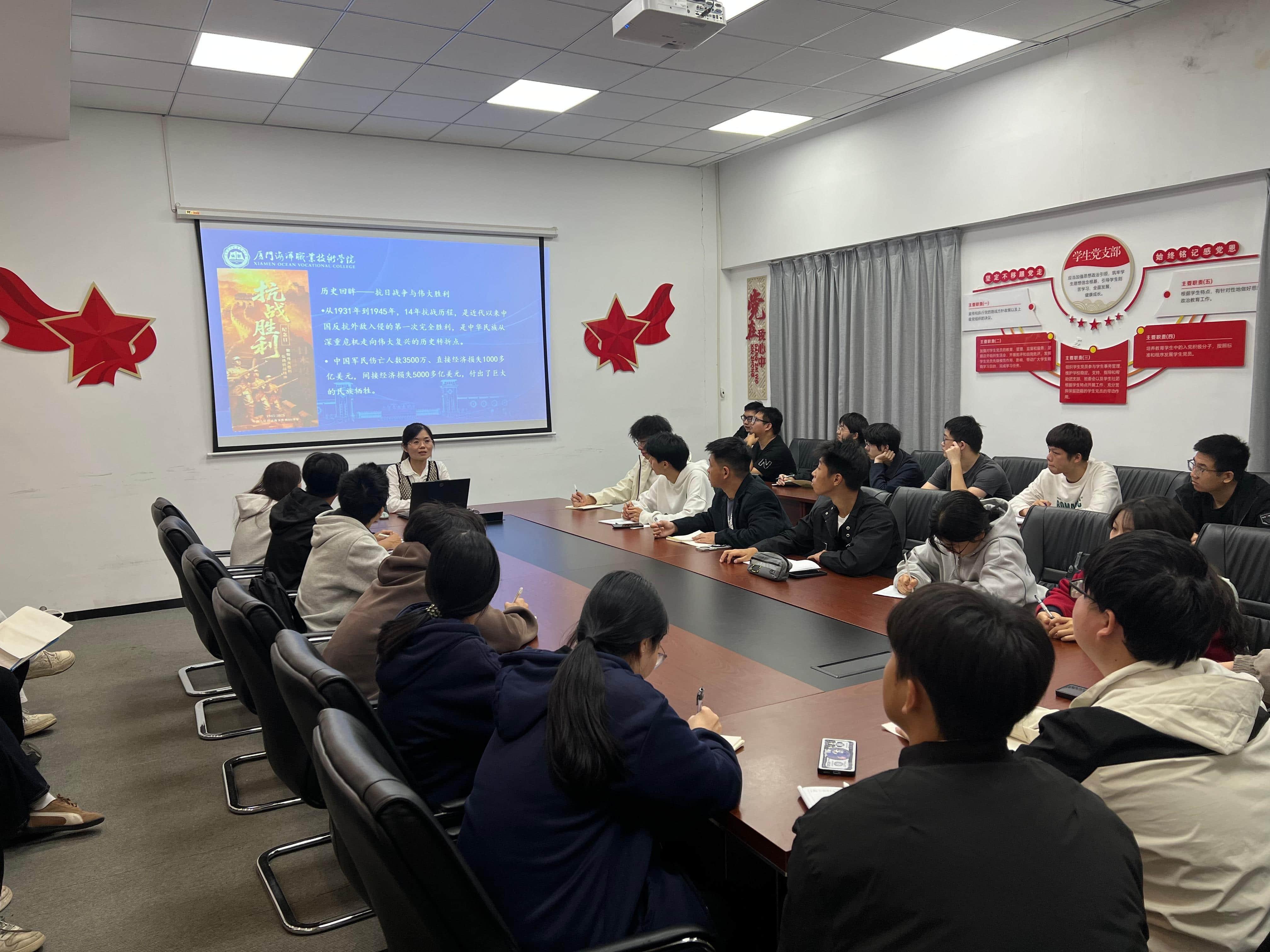 为大力弘扬伟大抗战精神,引导青年学子坚定理想信念、厚植家国情怀。11月20日,海洋机电学院党总支组织员、学生第二党支部书记申倩以“在新时代继承和弘扬伟大抗战精神”为题为学生党员、入党积极分子及青马班成员讲授专题党课。