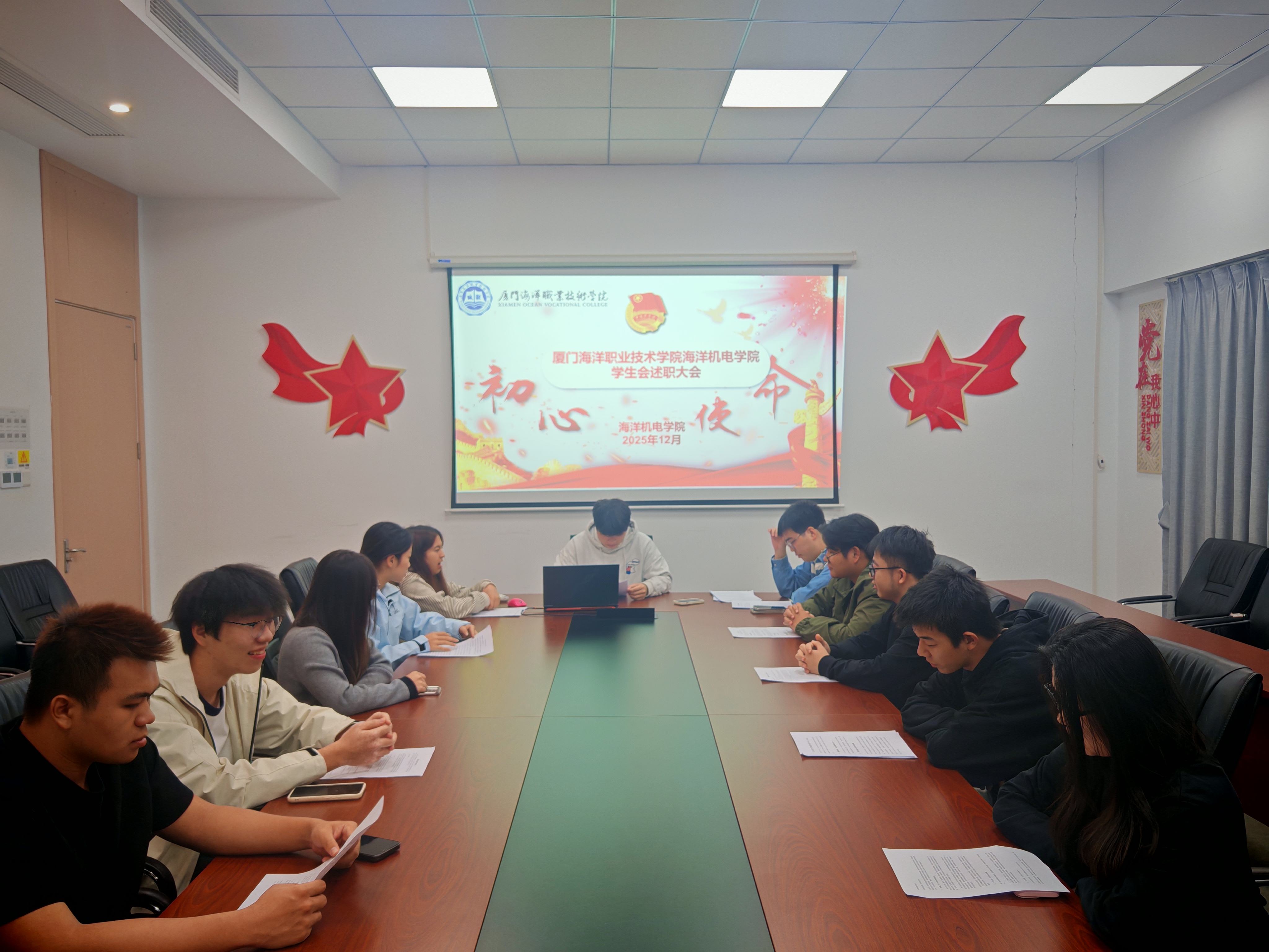 时光荏苒,步履不停。为全面总结团学联本学期工作成效,海洋机电学院团学联组织述职大会于在敦睦楼309顺利召开。团学联全体成员齐聚一堂,共同见证责任与担当的传递,共绘未来发展的崭新蓝图。