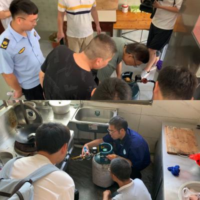 在入户过程中,董教授采用“泡沫检测法”,排查液化气是否泄漏的方法。因液化气瓶内压强比常温下空气压强要大,将泡沫涂抹在管道连接处,如果泡沫有明显变大,则说明该管道密封性较差,导致液化气体泄漏。“只需要将洗洁精和水混合在一起,就能得到大量绵密的泡沫,用毛巾或毛刷将泡沫涂抹在管道连接处,观察泡沫是否变大即可。”用最简单的方法就能准确快速地检测出液化气是否泄漏,排查安全隐患。