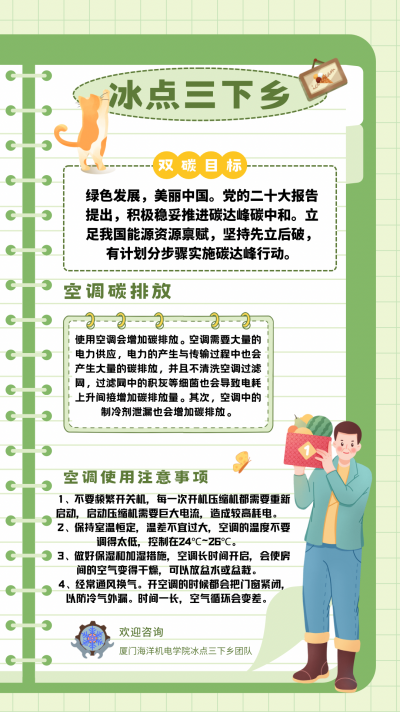 实践队结合大学专业特色,宣传制冷知识,从空调节能角度宣传“双碳”目标,并开展义务空调清洗活动,讲授空调清洗技能。