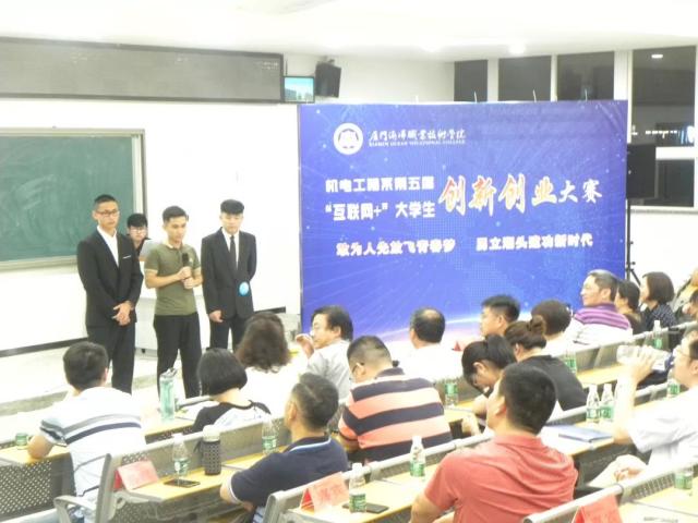 为切实提高学生创新精神、创业意识及创新创业能力,进一步营造创新创业良好氛围,我系于5月27日晚在翔教t1成功举办第五届“互联网+”创新创业大赛。学生处副处长、创新创业与就业中心主任洪洲培应邀参加并担任评委。机电工程系党总支书记林玉媛,主任王忠杰和系班子成员、教研室主任、专业带头人、全体教师辅导员以及学生代表近300人现场观看比赛。