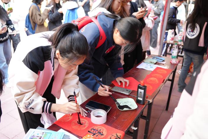 现场还有港澳籍、少数民族学生以及老师共同参与廉洁对联书写、亲身体验舞龙舞狮,活动不仅展现出非遗艺术的独特魅力,进一步增强了大家的民族认同与文化自信,还促进了港澳学子与内地学子的交流融合,同时兼具思政教育意义。