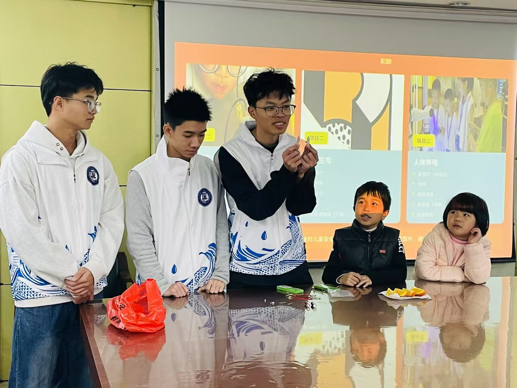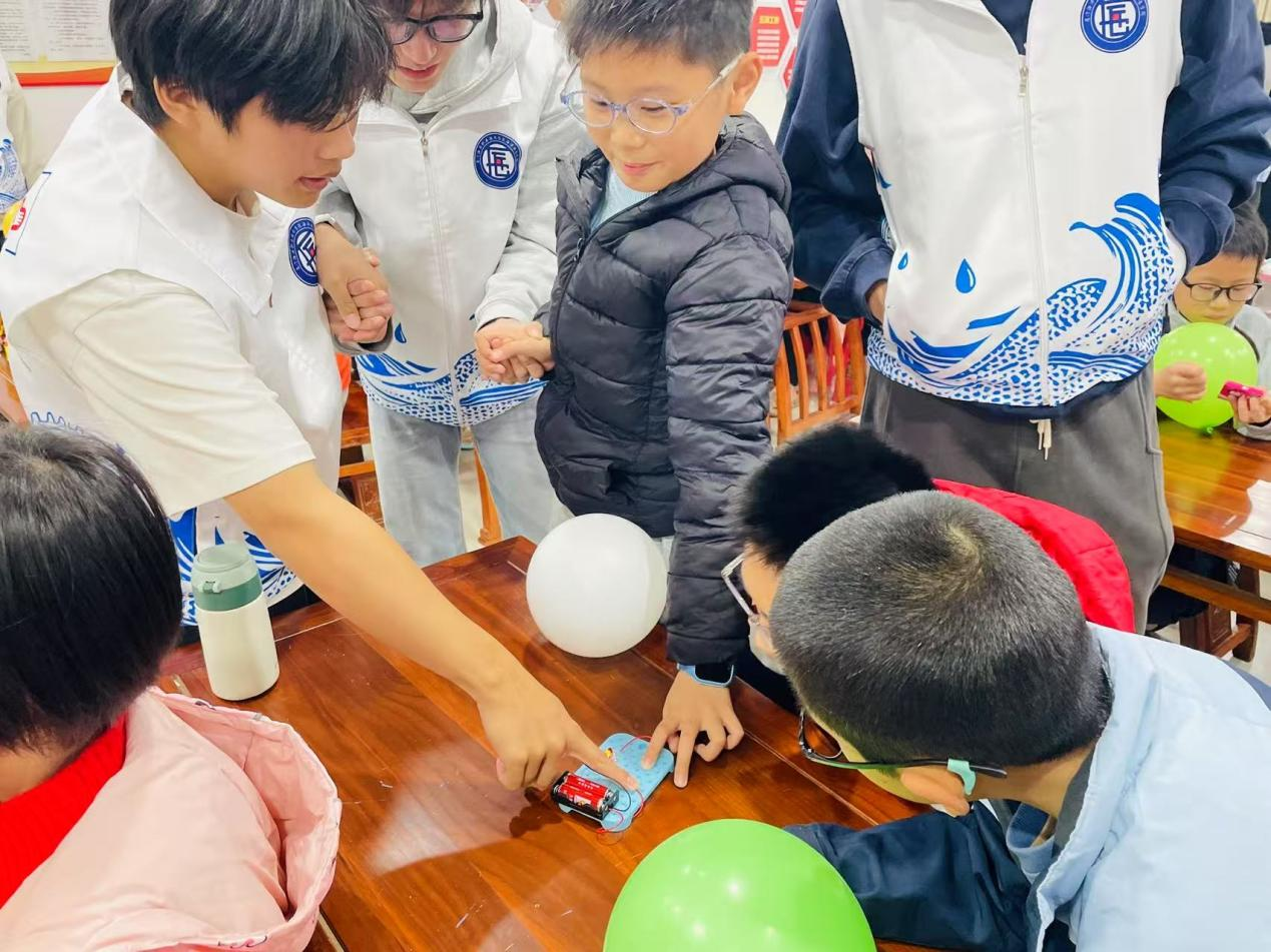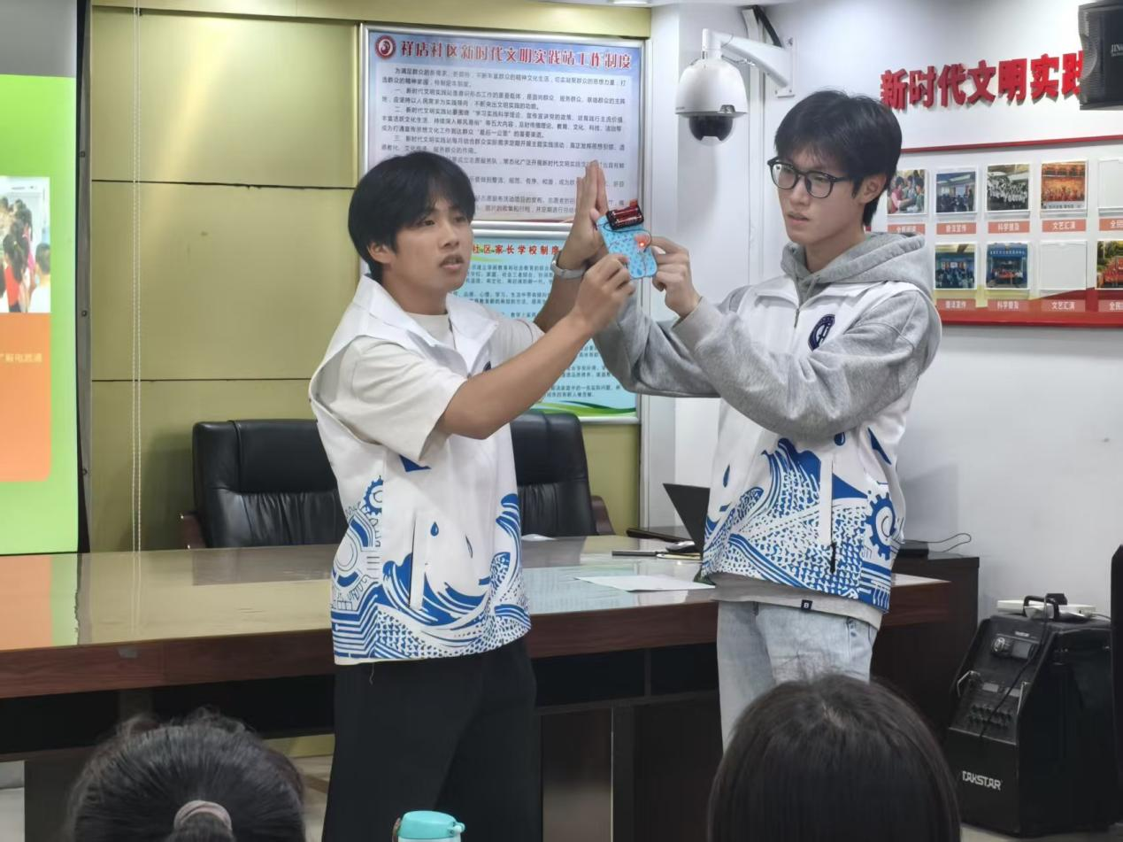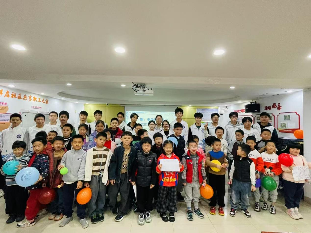 由制冷3254、机器人3254、机电3253、机器人3252等支部联合开展的“电的魔法派对”科技启蒙活动在祥店社区举行。志愿者们通过水果发电、摩擦生电等趣味实验,带领孩子们探索电的奥秘。在动手实践中,科学知识变得生动可触,青年学子的专业知识转化为服务社区、启蒙童心的温暖力量,在孩子们心中播下了好奇与创新的种子。