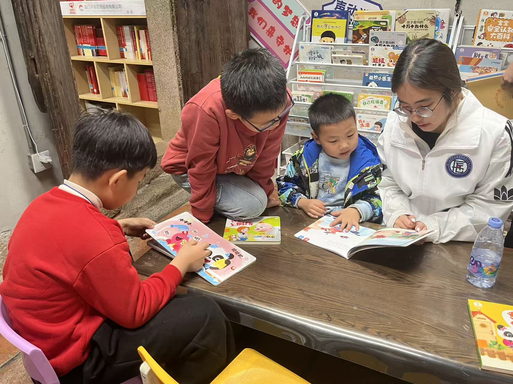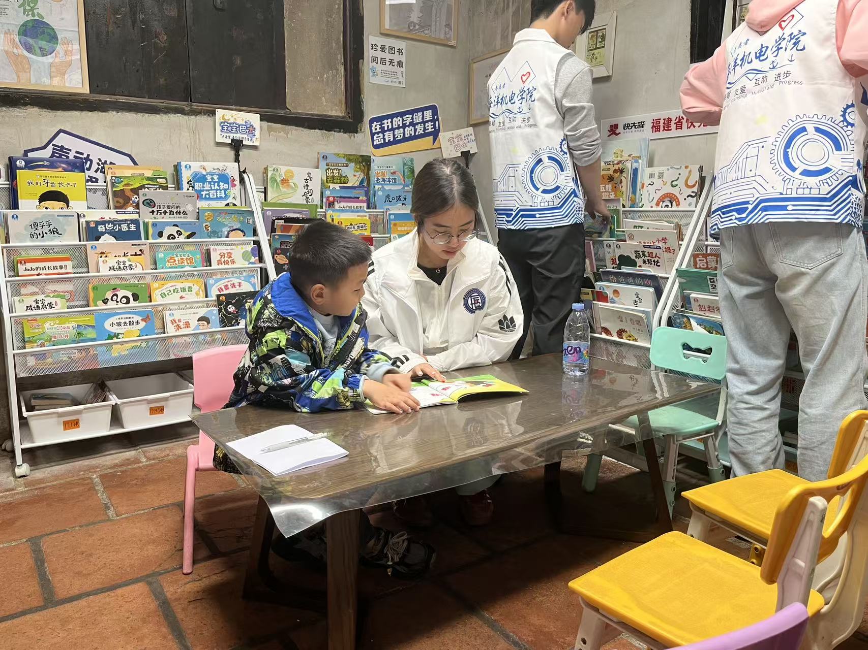 机器人3251班团支部走进围里古厝书屋公益图书馆,开展绘本陪读与创意绘画活动。志愿者们通过“一对一”伴读、互动提问,激发孩子们的阅读兴趣;在绘画工坊中鼓励创意表达,协助记录童真想法。活动不仅为社区儿童提供了温馨的陪伴,也在整理书籍、维护环境中展现了团员青年的细致与担当,让公益阅读空间更显温度。