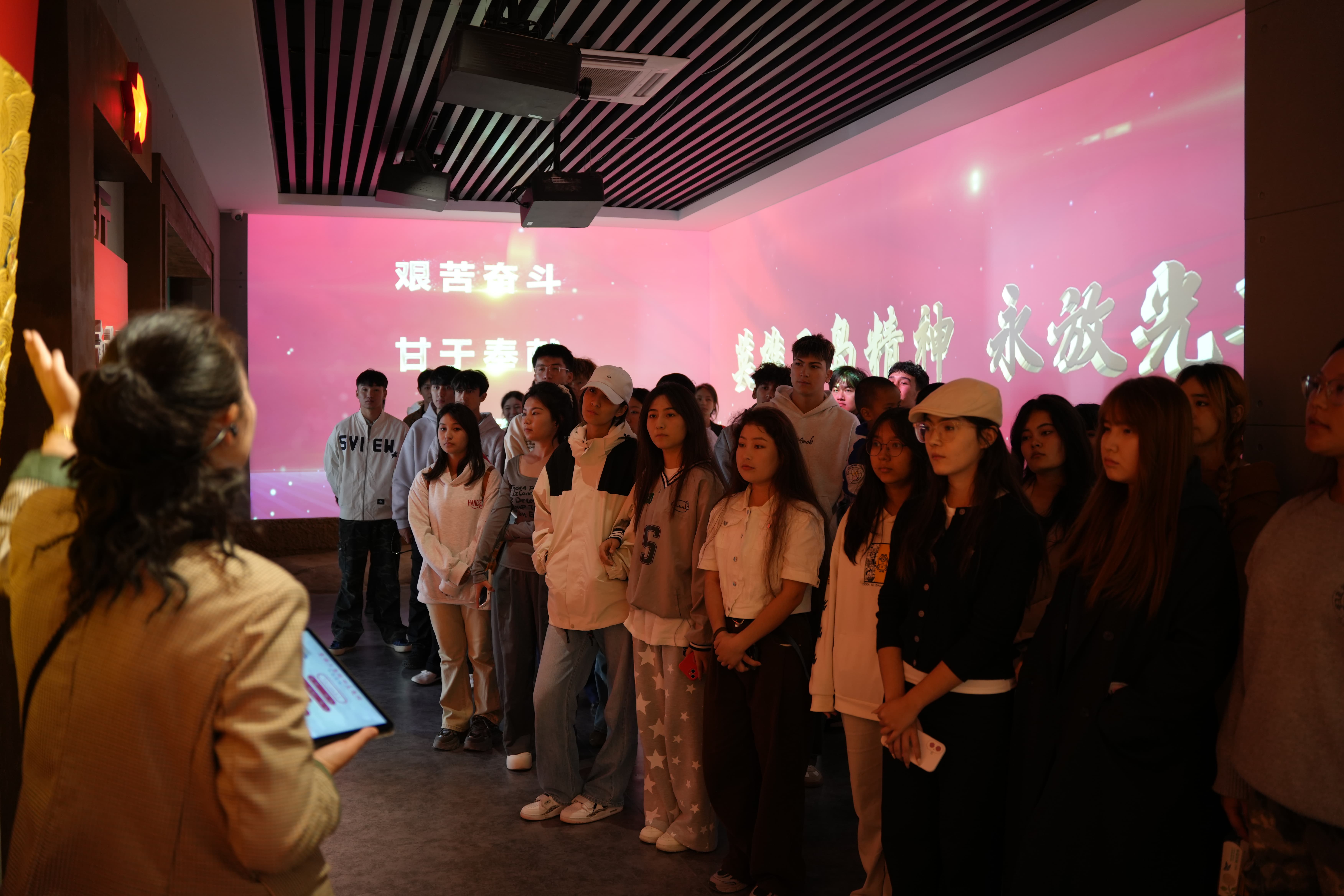 同学们循着讲解员的引导先后参观了国防教育园、民兵事迹馆、英雄三岛精神教学点、英雄三岛精神主题展馆等红色教育基地。每一件珍贵文物、每一段历史影像,都生动诠释着“英雄三岛精神”和天下兴亡匹夫有责、百折不挠、坚韧不拔的抗战精神。这些闪耀在党史中的精神财富,构筑起共产党人的精神谱系,成为激励新时代青年奋勇前进的力量源泉。活动第二环节,学生党员们集体观看《中国共产党人的精神谱系:伟大建党精神》,在观影中感受长征精神、抗日精神的伟大精神的现实意义,汲取了奋进力量。