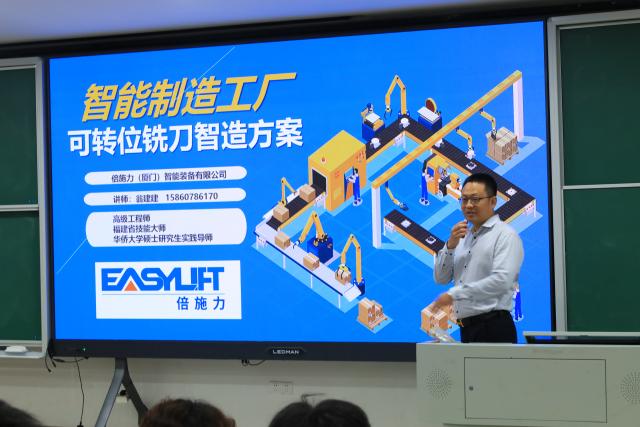 4月22日下午,来自倍施力(厦门)智能装备有限公司的翁建建老师在我校T1教室开展《智能制造工厂可转位铣刀智造方案》专题讲座。此次讲座吸引了来自我院机电一体化技术、数控技术、机械设计与制造等多专业近200名学生参加,王忠杰院长主持本次讲座。