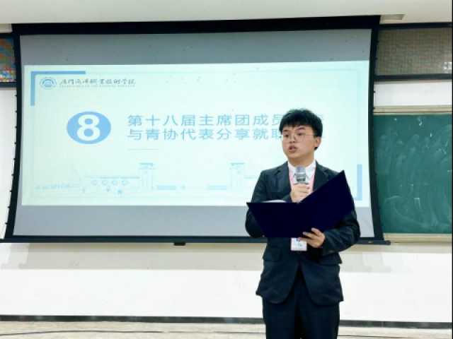 第十五届青协代表郑海波发表就职感想,立志履责担当,秉承“奉献、友爱、互助、进步”的志愿服务精神,以实际行动服务师生,用无私奉献书写初心,努力构建美丽和谐校园。