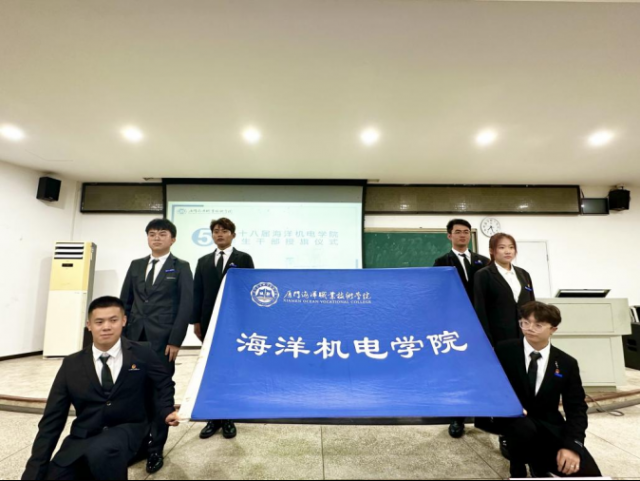 9月27日,海洋机电学院第十八届学生干部换届大会暨第十七届优秀学生干部颁奖仪式、第十八届学生干部授牌仪式在T1举行。海洋机电学院党总支副书记胡素惠、团总支书记周仕仁、团总支副书记苏小青、辅导员陈梓成老师出席本次大会。