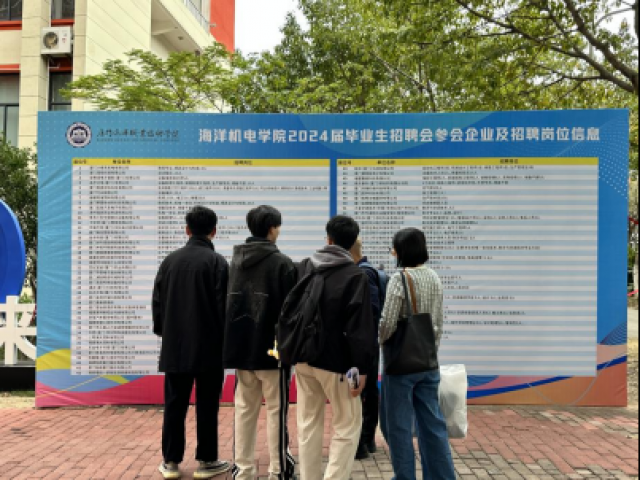 坚持立德树人根本任务积极搭建毕业生与用人单位双向选择的优质服务平台11月14下午厦门海洋职业技术学院海洋机电学院2024届毕业生专场招聘会在翔安校区羽毛球馆举行。84家招聘单位带着121个岗位、近1000个人才需求来到现场。校党委委员、副校长马国玄、就业创业处处长周敏莅临现场指导。