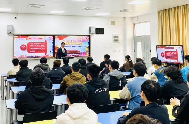 最后,陈老师将宪法学习与爱国主义教育相结合,提出青少年是祖国的未来,民族的希望,大学生法律素质的高低,关乎法治国家、法治政府、法治社会建设,号召同学们行动起来,从自己做起,从身边小事做起,自觉做到学法、知法、守法、护法,为实现中华民族伟大复兴的中国梦做出应有的贡献。