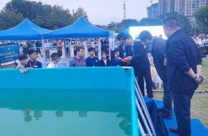 我院参赛团队按顺序依次对参赛作品进行展示,从作品设计理念入手,对作品的结构、功能、应用场景、未来前景等方面进行了详细介绍,并在比赛水池上进行演示,充分展示参赛学生扎实的专业知识基础与创新设计能力,展现我院在海洋装备设计、制作以及海洋技术研究等领域的综合实力。