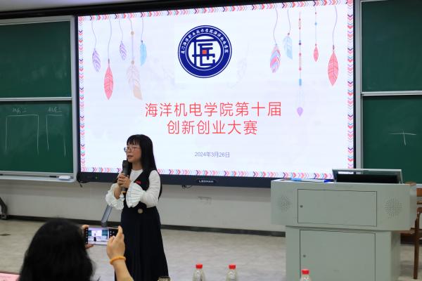 ​  为弘扬创新精神、培养创业意识、提升创业能力,营造校园创新创业良好生态,3月26日晚上,海洋机电学院第十届创新创业大赛在翔教T1教室顺利开展。本次大赛邀请海洋机电学院院长王忠杰老师、副院长杨智玲老师数控教研室主任杨光老师、制冷教研室主任董亮老师及机电教研室主任王海瑶老师担任评委,各项目团队指导老师和学生代表到场观摩。
