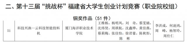 在学院领导的大力推动、关心和支持下,由李洪成、何凌鸿、周峰、杨智玲、周仕仁等为指导老师,带领“科技兴渔—云科技智能投料机”团队参加比赛,发挥出色,获该赛项铜奖。