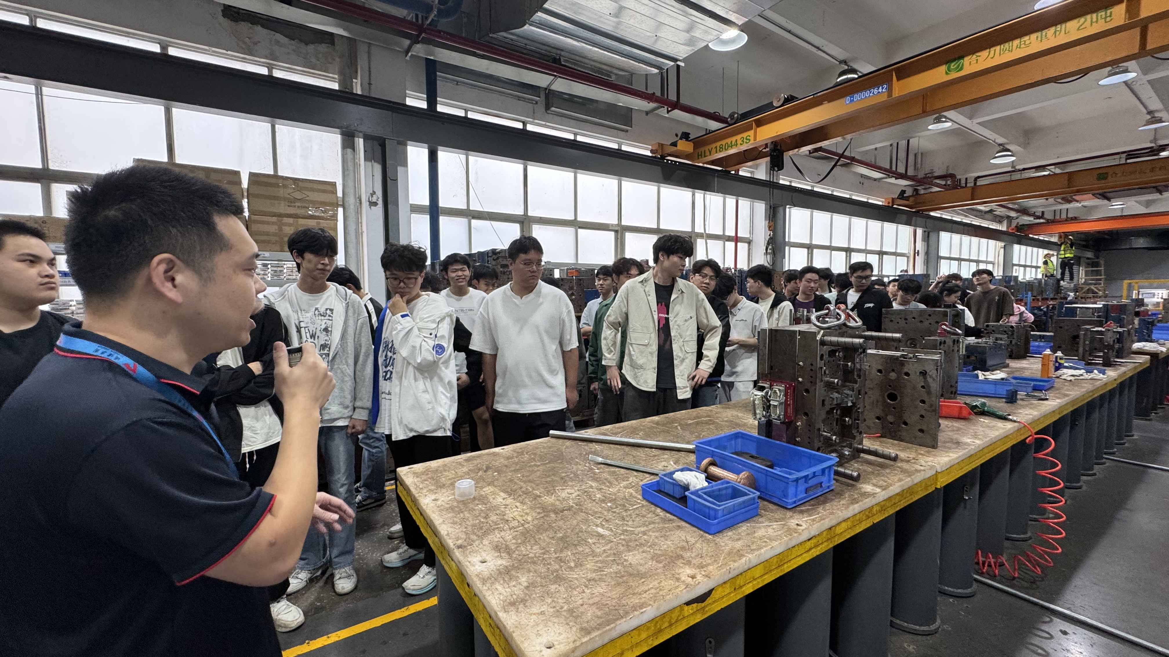 在工作人员的带领下,师生们有序走进模具车间的办公区、加工区、装配区、产品展示区等核心场地。通过实地观察、设备讲解、流程演示等方式,同学们直观了解了企业的生产运营模式、核心技术优势及行业发展趋势,将课堂所学与实际应用紧密结合。同学们边走边学、边看边问,在与工作人员的互动交流中破解职场困惑,积累实践经验。