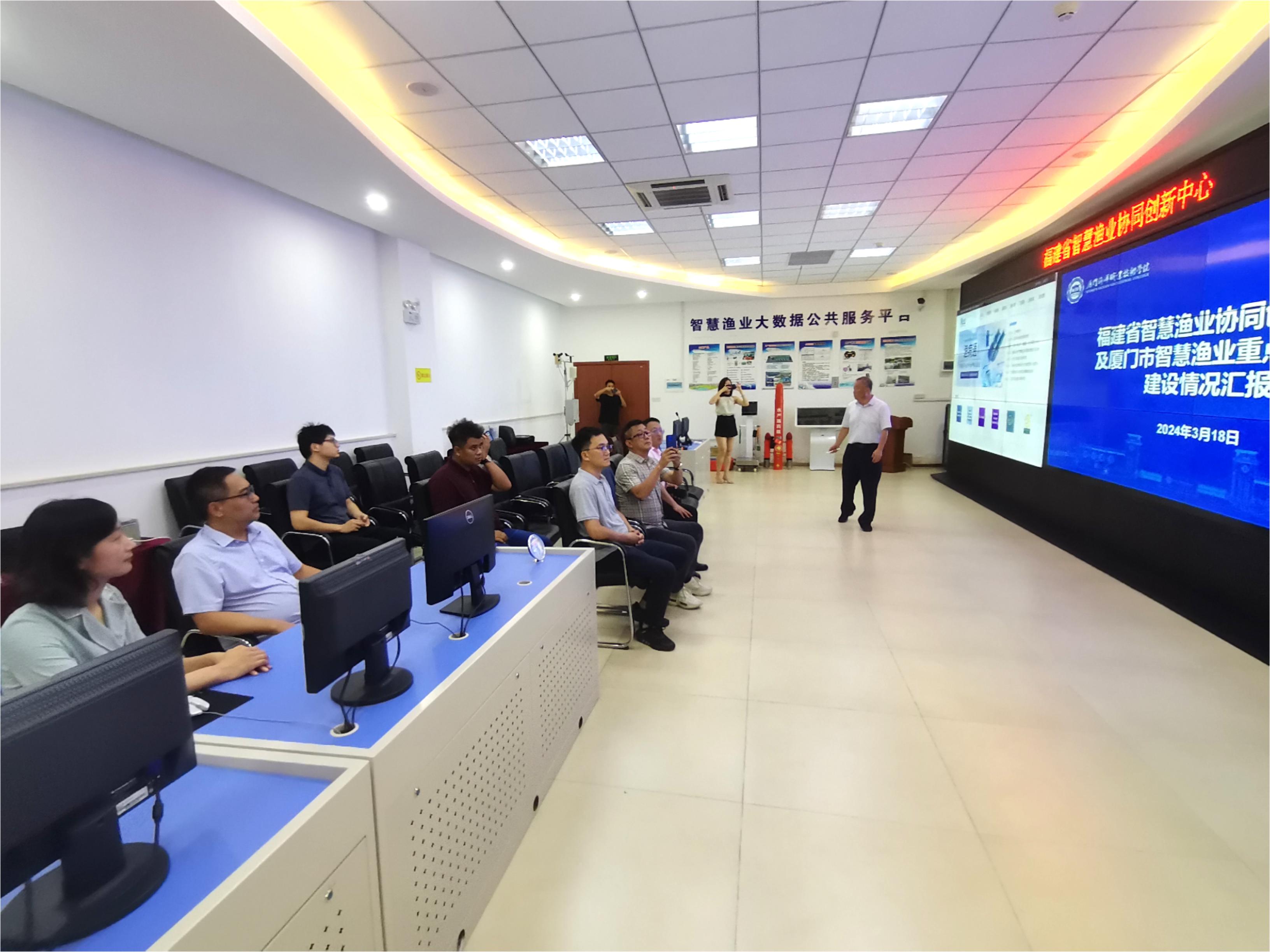 2024年7月31日,为推动国际交流,了解行业需求,进一步加深学生合作培养,马来西亚澳鑫集团董事主席黄文胜、华闽数智(福建)科技有限公司董事长宋苏镔带队来我校厦门智慧渔业实验室参观座谈。