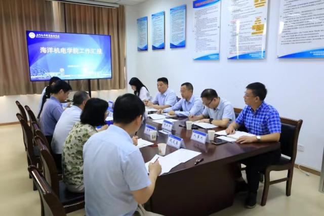 随后,刘光明校长听取了海洋机电学院领导班子关于学院发展情况的汇报,详细了解学院的学科建设、师资队伍、科研创新、校企合作、人才培养等方面情况。
