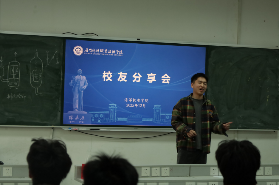 为扎实推进毕业生高质量充分就业,引导学子树立正确的就业观与职业理想,12月16日,海洋机电学院成功举办校友就业经验分享会,本次分享会由副院长吕辉停主持。学院特邀2023届优秀毕业生、现就职于厦门航空酒店管理有限公司湖里物业分公司的林志坤校友重返母校,与在校生面对面交流,分享其从校园到职场的成长历程与宝贵心得。