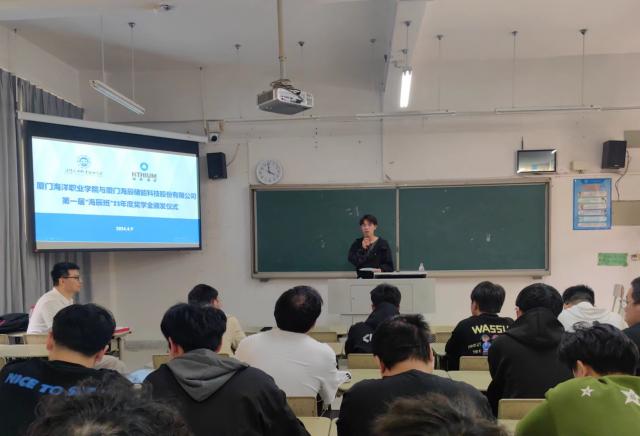 2024年4月9日,厦门海洋职业技术学院联合厦门海辰储能科技股份有限公司完成了2023年度“海辰班”奖学金的颁奖仪式,并为海辰班同学组织了一场设备安全知识分享会。出席此次活动的有海洋机电学院王忠杰院长、辅导员周晓维、海辰班全体同学及海辰储能的相关人员。