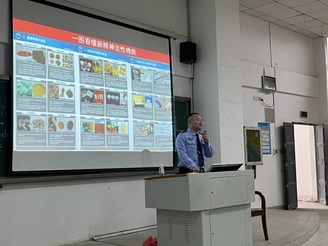 讲座中,蒋警官细致地向同学们解说了毒品及新型精神活性物质的定义,使同学们对毒品有了更深入的认识。警官运用了丰富的资料和生动的案例,重点介绍了毒品的种类、危害等知识,深入剖析了毒品,尤其是新型毒品对个人和社会的危害,教育广大学生如何抵制诱惑,自觉拒绝毒品。同时,他号召同学们要将拒绝毒品的决心贯彻到行动中,不仅要远离毒品,更要积极地向周围的亲友宣传这些知识,培养良好的学习和生活习惯,提升自身的防范能力。