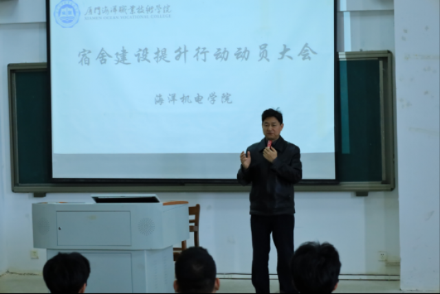 为切实增强学生的安全意识,促进学生良好文明习惯的养成,推动宿舍育人工程的深入发展,打造整洁卫生、文明有序、安全和谐的宿舍环境,海洋机电学院于3月12日在T3召开了宿舍建设提升行动动员大会。参加此次会议的人员包括学院王斌书记、辅导员周晓维、李志佳老师以及学院自律会成员和全体宿舍长。