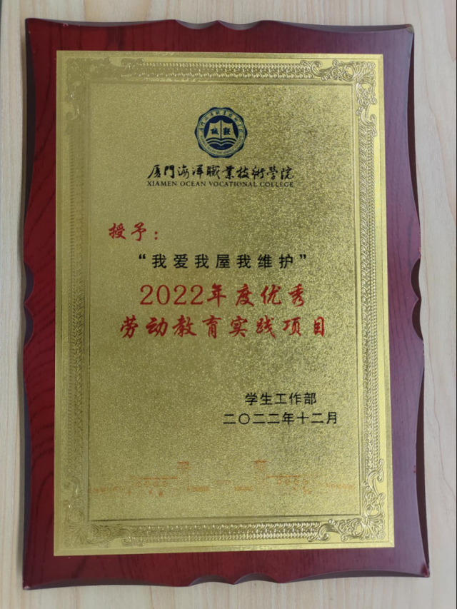 “我爱我屋我维护”项目获得学校“2022年度优秀爱劳动教育实践项目”荣誉称号