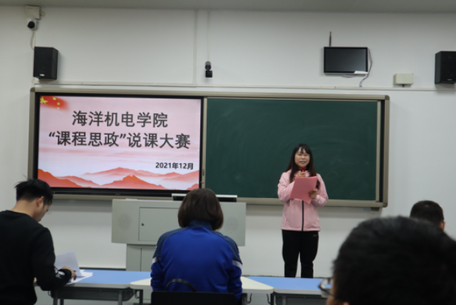 12月7日下午,海洋机电学院结合“课程思政”岗位大练兵,在翔教1502开展2021年海洋机电学院“课程思政”说课大赛。