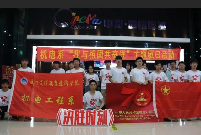 为隆重庆祝中华人民共和国成立70周年,大力唱响礼赞新中国、奋进新时代的青春主旋律。机电系团总支于9月24日组织“我与祖国共奋进”主题团日活动,共同观看了影片《决胜时刻》。