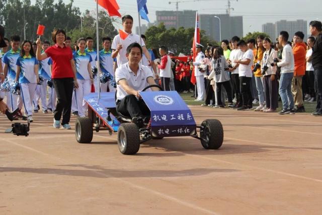 由林高举、郭春梅老师及其学生团队自主研发的卡丁车也首次亮相校运会开幕式,成为方阵队列中的一道亮丽风景线。