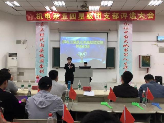 百年青春心向党,矢志建功新时代。今年是五四运动100周年,为深入学习领会习近平总书记在纪念五四运动100周年大会上的重要讲话精神。5月7日下午,机电系在翔教梯3教室举办机电系五四星级团支部评选大会,系团总支书记黄瑞武出席并讲话,班主任代表、全体辅导员及院系团学干部参加活动。