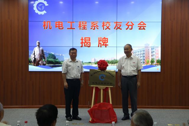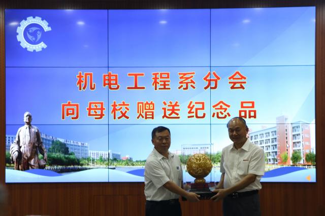 机电系主任王忠杰当选分会会长,党总支书记林玉媛当选监事长,并聘请李亚平、黄根在、甘细福、李小平为顾问,彭胜展、汤水源为名誉会长。会议伊始,王忠杰通过PPT向校友们汇报了学院及机电系的发展情况。院党委副书记、校友会会长汤忠民和机电工程系校友分会会长王忠杰共同为机电工程系校友分会揭牌。