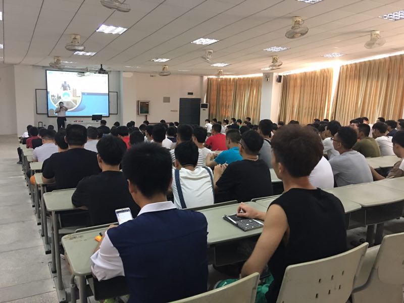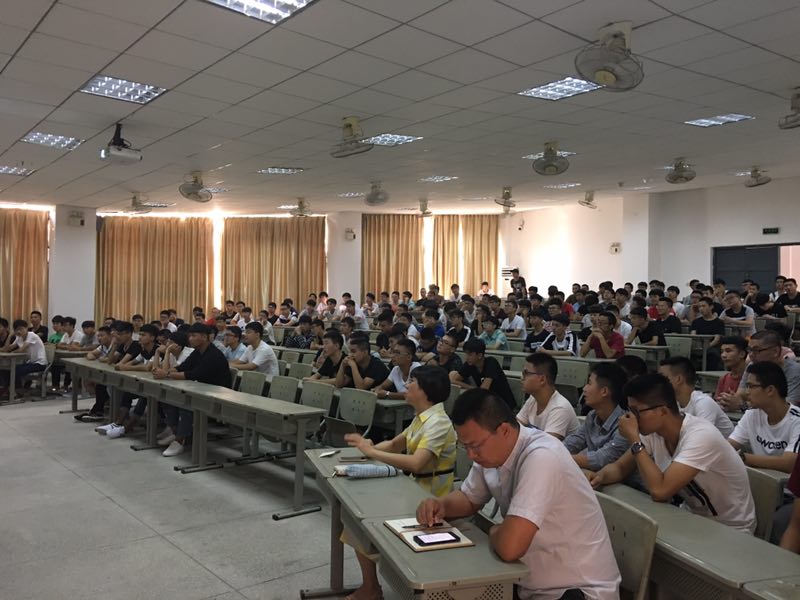 王忠杰老师为新生介绍机电系的五个专业的特点以及内容,还为同学们讲述了如何做好职业规划。