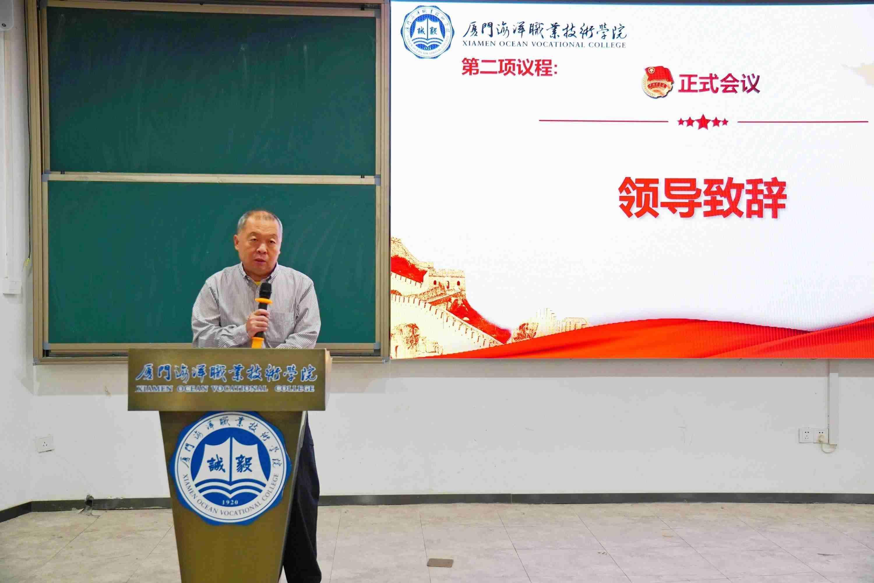 11月4日,海洋机电学院第十九次学生代表大会在t1教室召开。学院党总支书记王忠杰、党总支副书记刘晓晓、副院长吕辉停、党总支组织员申倩、团总支书记刘梦绮、辅导员及百余名学生代表出席本次会议。