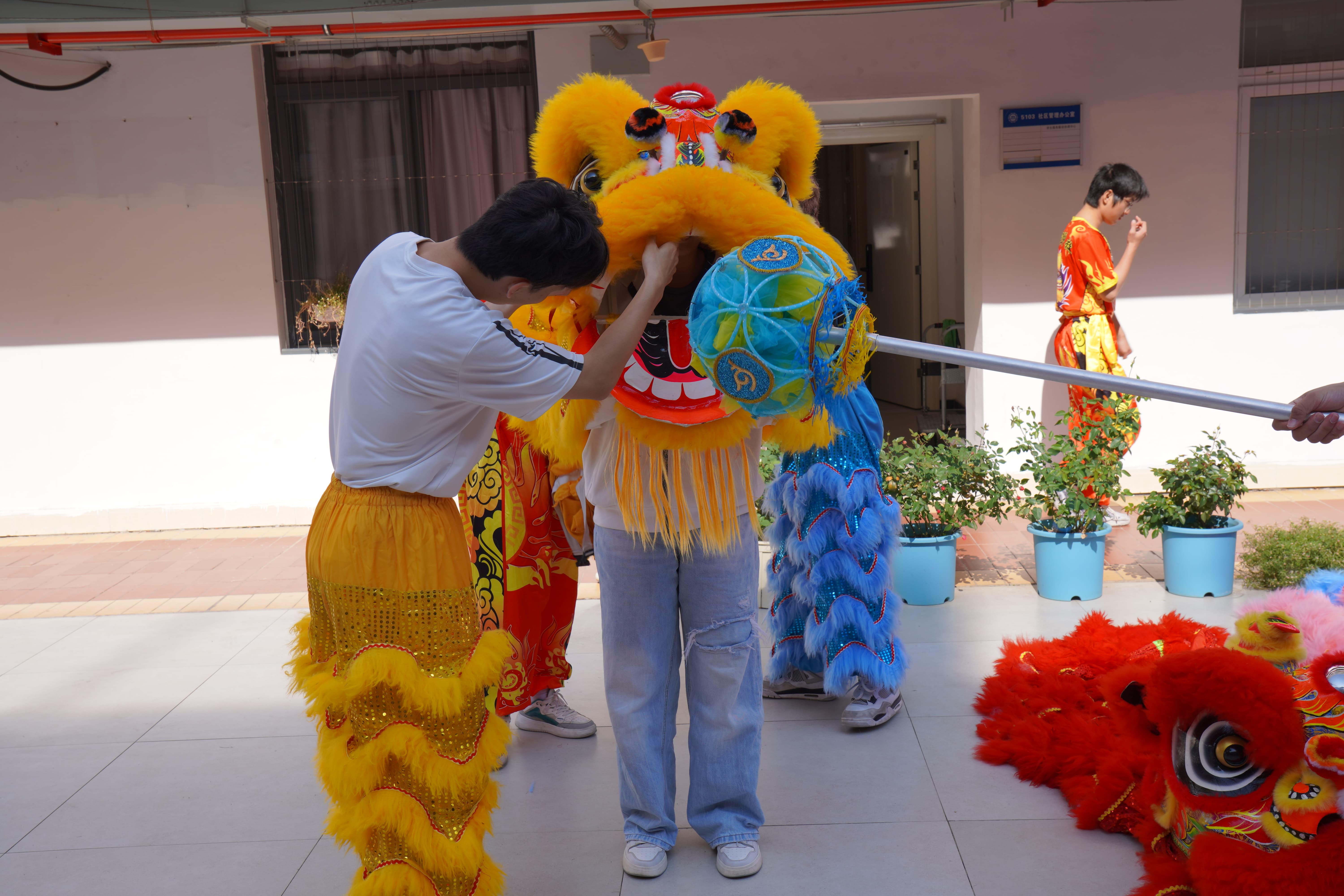 活动现场还邀请了海院龙狮社成员,手把手拆解舞龙舞狮的招式门道——从龙头的昂首摆尾到狮子的腾挪跳跃,从节奏的把握到团队的默契,每一招每一式都蕴藏着中华文化的深厚底蕴与集体智慧。同学们在亲身实践中,既感受了龙狮舞动的活力与神韵,也体悟了非遗背后“同心协力、和谐共融”的精神内涵。