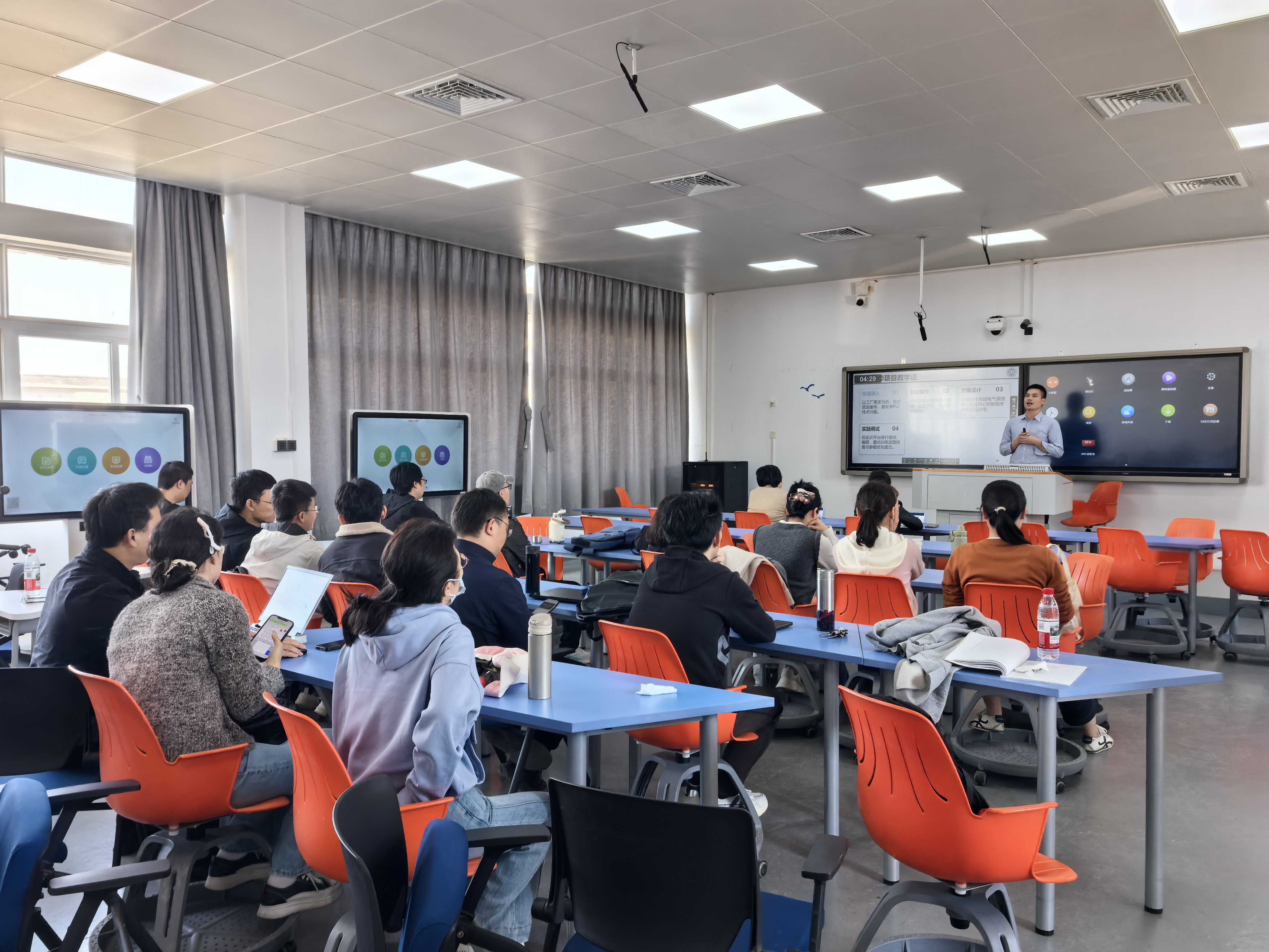说课过程中,教师们围绕教学设计、实施过程、学习成效、特色创新与改进方向,系统呈现课程建设成果,课程思政与专业知识自然融合,数智技术应用积极体现,彰显职业教育服务海洋经济与地方产业的育人导向。点评环节,评委充分肯定了教师对课程思政元素的挖掘深度,并从教学规范、呈现细节等方面提出优化建议。学院领导强调,课程建设是专业发展的基石,要以赛促教、促建,鼓励教师优化策略,打造更多具有海洋机电特色的优质课程,推动人才培养更好服务海洋经济发展。