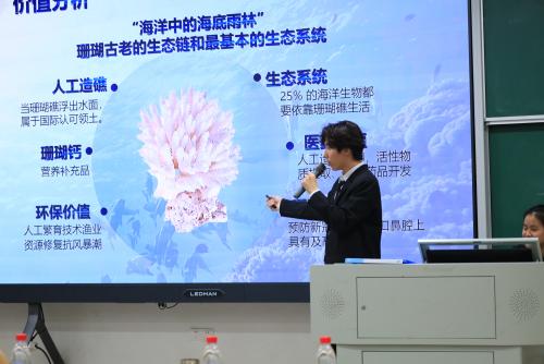 本次创新创业大赛,共10组团队参赛,比赛过程包含项目路演展示和现场答辩两个环节。在项目路演展示环节中,各团队代表按顺序依次上台汇报,针对项目背景、商业模式、竞争优势和市场价值等角度一一进行了汇报与展示。