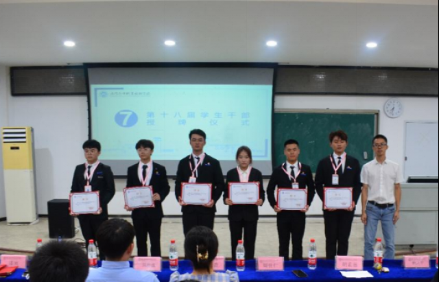 9月27日,海洋机电学院第十八届学生干部换届大会暨第十七届优秀学生干部颁奖仪式、第十八届学生干部授牌仪式在T1举行。海洋机电学院党总支副书记胡素惠、团总支书记周仕仁、团总支副书记苏小青、辅导员陈梓成老师出席本次大会。