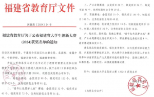 据悉,本次2024年福建省大学生创新大赛由省教育厅、省委统战部、省发改委、省工信厅等11部门共同主办。据统计,此次比赛全省参赛项目近28.1万个,覆盖全省253所学校,参赛人数、项目数均创历史新高。是目前国内最高规格、覆盖最广、最具权威、最具影响力的“双创”顶级盛会,其成绩是学校人才培养、科学研究、成果转化的最直接体现。