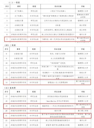 《智慧渔业--无人化管理渔场》获涉海涉水相关软硬件系统赛道“三等奖”,项目指导老师:魏茂春、王忠杰;项目负责人:李伟峰,团队成员:洪茂林、黄秋玉、乐顺、林涵、魏嘉伟、尤鹏涛、尤铭城。