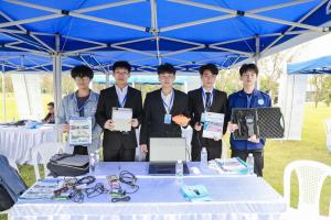 在本次大赛中,我院学子不仅有着扎实的专业基础,并且言行举止间尽显良好素养。福建理工大学智慧海洋科学技术学院党委书记王强和副院长高秀晶等领导巡展时,称赞我校学生训练有素、经验丰富,并与团队合影。