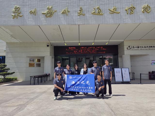 习近平总书记强调,博物馆是人类文明的珍贵守护者和传承者,承载着连接过去、现在和未来的重要使命。为进一步增强文化自信,感受并体验文化的独特魅力,我院“海丝之光”社会实践队于7月4日启程,由指导老师周晓维带队前往泉州海外交通史博物馆开展暑期“三下乡”社会实践活动,通过参观、分享、采访等形式进一步挖掘和了解古代海外交通、海上丝绸之路,以及由此引发的各种经济、文化交流故事。