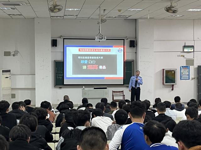 讲座中,蒋警官细致地向同学们解说了毒品及新型精神活性物质的定义,使同学们对毒品有了更深入的认识。蒋警官运用了丰富的资料和生动的案例,重点介绍了毒品的种类、危害等知识,深入剖析了毒品,尤其是新型毒品对个人和社会的危害,教育广大学生如何抵制诱惑,自觉拒绝毒品。同时,他号召同学们要将拒绝毒品的决心贯彻到行动中,不仅要远离毒品,更要积极地向周围的亲友宣传这些知识,培养良好的学习和生活习惯,提升自身的防范能力。