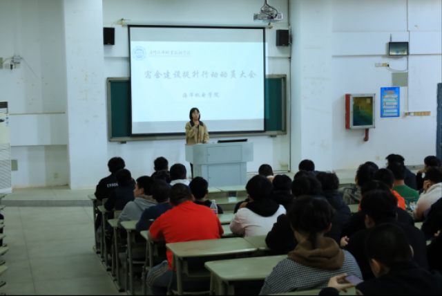 为切实增强学生的安全意识,促进学生良好文明习惯的养成,推动宿舍育人工程的深入发展,打造整洁卫生、文明有序、安全和谐的宿舍环境,海洋机电学院于3月12日在T3召开了宿舍建设提升行动动员大会。参加此次会议的人员包括学院王斌书记、辅导员周晓维、李志佳老师以及学院自律会成员和全体宿舍长。